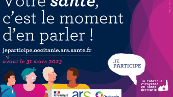 Du 13 février au 31 mars 2023 pour la première fois, l’Agence régionale de santé Occitanie invite les 6 millions d’habitants de notre région à s’exprimer sur leur santé. A l’écoute des besoins des habitants de chacun de nos territoires, cette consultation citoyenne vise aussi à recueillir leurs idées et propositions de solutions pour améliorer la santé.