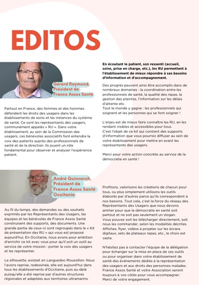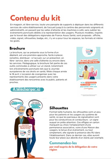 France Assos Santé Occitanie met à disposition un kit d’outils téléchargeables destiné à valoriser la présence et le rôle des représentants des usagers (RU) au sein des établissements de santé.