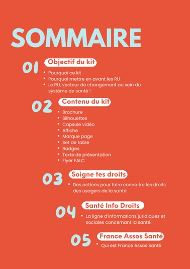 - un set de table intégrant un quiz sur les droits en santé, à destination des professionnels et des patients.